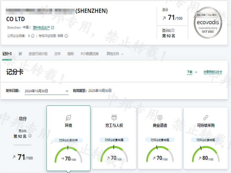恭贺深圳市XX精密塑胶模具有限公司2024年10月顺利通过EcoVadis验厂 获得银牌一枚!